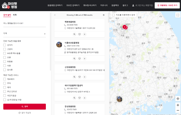 24시간 동물병원 찾기